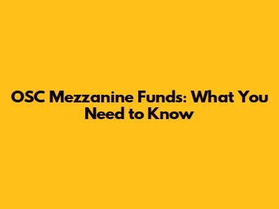 OSC Mezzanine Funds: What You Need To Know