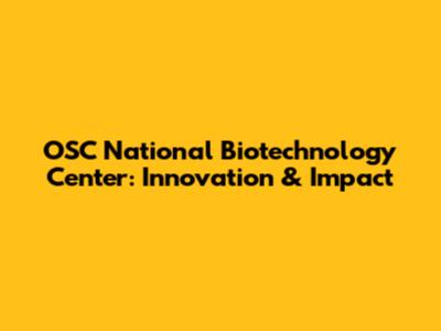 OSC National Biotech Center: Innovation & Impact