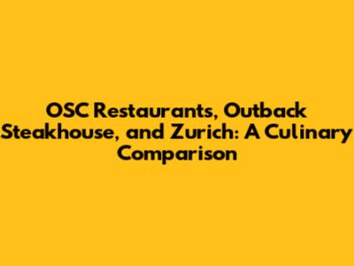 Choosing between OSC Restaurants, Outback Steakhouse, and Zurich depends on your personal preferences and what you’re looking for in a dining experience. If OSC is a modern, trendy restaurant, it might suit those looking for a unique dining experience. If you’re looking for a casual meal with friends and family, Outback's familiar menu and relaxed atmosphere could be a great choice. But if you’re a foodie seeking a diverse culinary adventure, then Zurich offers an exciting array of dining options. Think about the occasion, the company you’re with, and what kind of meal you’re craving. Each option offers something unique, so the best choice depends on your needs. For those who want consistency and value, Outback is a dependable option. For the adventurous eater, Zurich provides an array of high-quality, international dining. And if OSC hits the spot with a specific type of cuisine or concept, it could be perfect for a special night out. Ultimately, the best choice comes down to your taste and what kind of experience you are searching for. So, think about your preferences, and choose the option that sounds most appealing to you.