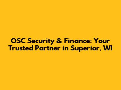 OSC Security & Finance: Your Trusted Partner In Superior, WI