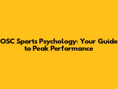 OSC Sports Psychology: Your Guide To Peak Performance