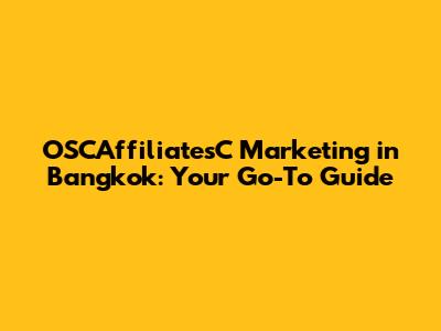 OSCAffiliatesC Marketing In Bangkok: Your Go-To Guide