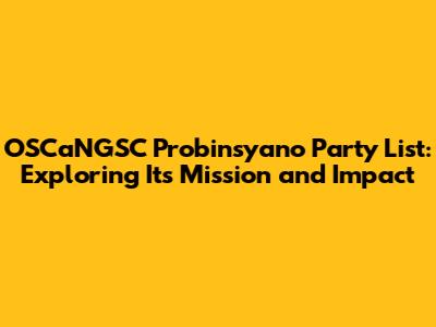 OSCaNGSC Probinsyano Party List: A Deep Dive