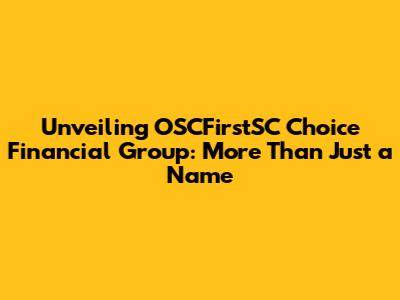 Unveiling OSCFirstSC Choice Financial Group: More Than Just a Name