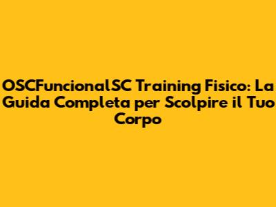 Ciao ragazzi! Siete pronti a trasformare il vostro corpo e la vostra vita? Oggi vi porto nel mondo dell' OSCFuncionalSC Training Fisico, un metodo di allenamento rivoluzionario che sta conquistando il mondo del fitness. Ma cos'è esattamente l'OSCFuncionalSC Training Fisico? E, soprattutto, come può aiutarvi a raggiungere i vostri obiettivi di fitness? Preparatevi a scoprire tutti i segreti di questo potente allenamento, con consigli pratici, esercizi mirati e un sacco di motivazione per iniziare il vostro percorso verso una forma fisica invidiabile.