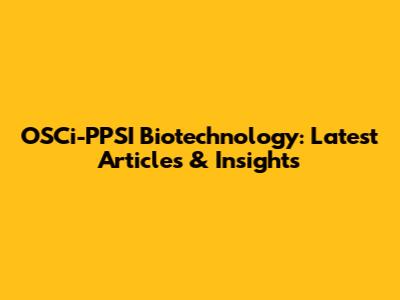OSCi-PPSI Biotechnology: Latest Articles & Insights