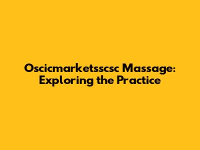 Oscicmarketsscsc Massage: Exploring The Practice