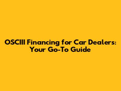 OSCIII Financing For Car Dealers: Your Go-To Guide