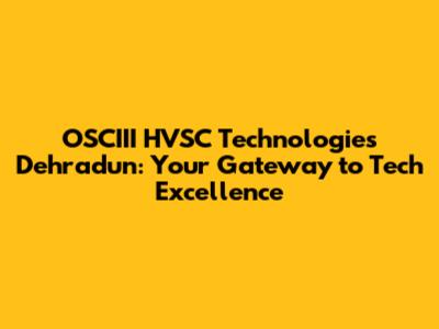 OSCIII HVSC Technologies: Dehradun's Tech Hub