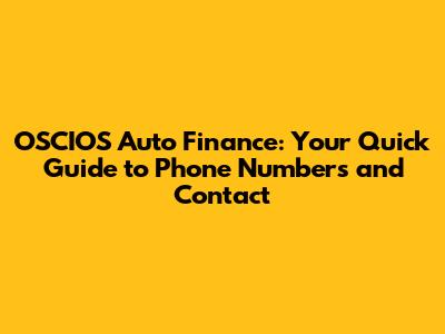 OSCIOS Auto Finance: Phone Number & Contact Guide