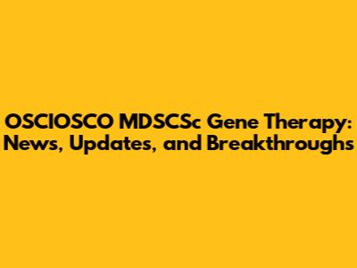OSCIOSCO MDSCSc Gene Therapy: News, Updates, And Breakthroughs