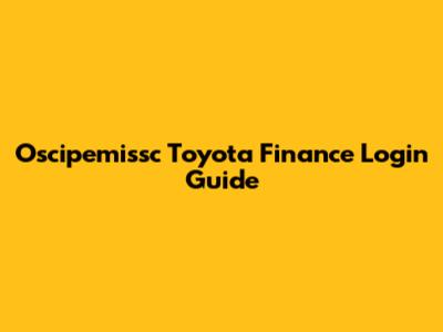 Oscipemissc Toyota Finance Login Guide