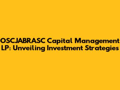 Hey everyone, let's dive into the fascinating world of OSCJABRASC Capital Management LP. It's a name that might sound a little complex, but don't worry, we're going to break it down. We'll explore what this company is all about, what they do, and why it's worth knowing about in the investment landscape. We'll be talking about their investment strategies, and what makes them unique in the competitive world of capital management.