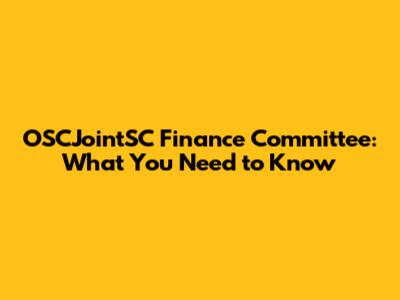 OSCJointSC Finance Committee: What You Need To Know