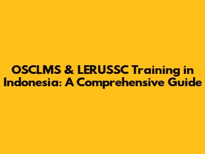 OSCLMS & LERUSSC Training In Indonesia: A Comprehensive Guide