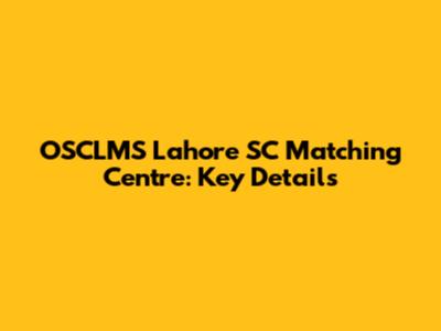 OSCLMS Lahore SC Matching Centre: Key Details