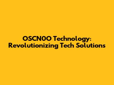 OSCN0O Technology: Revolutionizing Tech Solutions