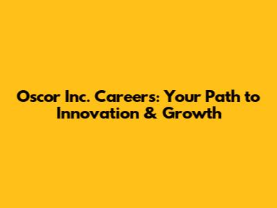 Oscor Inc. Careers: Your Path To Innovation & Growth