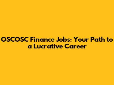 OSCOSC Finance Jobs: Your Path To A Lucrative Career