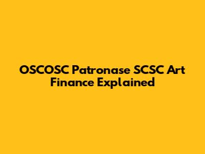 OSCOSC Patronase SCSC Art Finance Explained