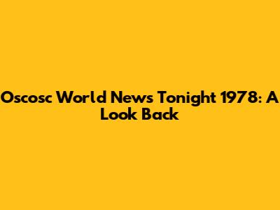 Oscosc World News Tonight 1978: A Look Back
