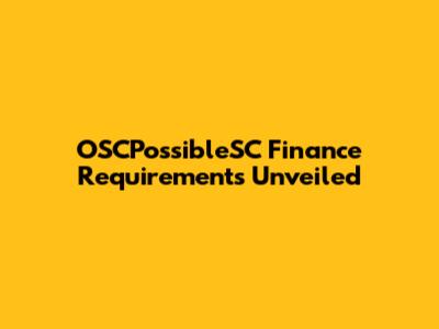 OSCPossibleSC Finance Requirements Unveiled