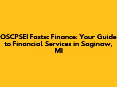OSCPSEI Fastsc Finance: Your Guide To Financial Services In Saginaw, MI