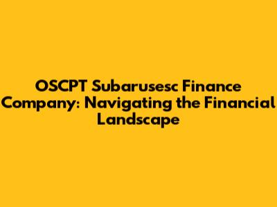 Understanding OSCPT Subarusesc Finance Company