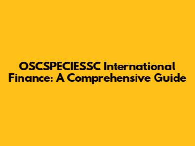 OSCSPECIESSC International Finance: A Comprehensive Guide