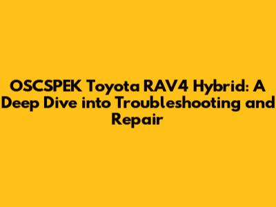 OSCSPEK Toyota RAV4 Hybrid: Troubleshooting & Repair