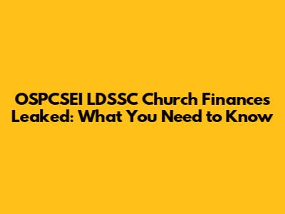 OSPCSEI LDSSC Church Finances Leaked: What You Need To Know