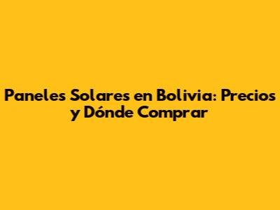¿Dónde Comprar Paneles Solares en Bolivia?
