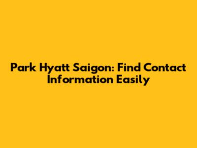 Park Hyatt Saigon: Find Contact Information Easily