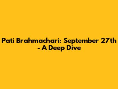 Hey guys! Let's talk about Pati Brahmachari on September 27th. I know, it might sound a bit cryptic at first, but trust me, we're going to break it down. We'll explore what it means, what significance it holds, and why it's something worth knowing about. This isn't just a random date and name; there's a whole world of meaning behind it. So, grab a cup of coffee (or your beverage of choice), get comfy, and let's dive in. It's gonna be an interesting ride, I promise!