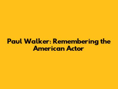 Paul Walker: Remembering The American Actor