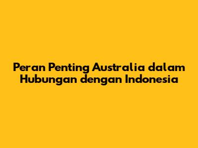 Peran Penting Australia Dalam Hubungan Dengan Indonesia