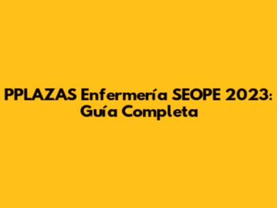 PPLAZAS Enfermería SEOPE 2023: Guía Completa