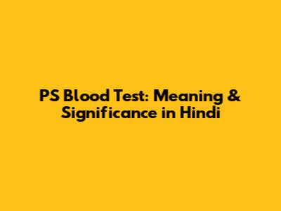 PS Blood Test: Meaning & Significance In Hindi