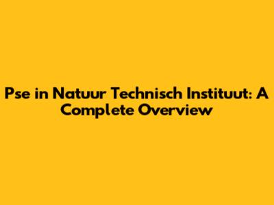 Pse In Natuur Technisch Instituut: A Complete Overview