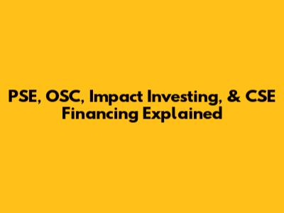 PSE, OSC, Impact Investing, & CSE Financing Explained