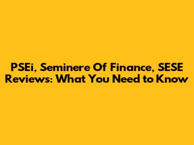 PSEi, Seminere Of Finance, SESE Reviews: What You Need To Know