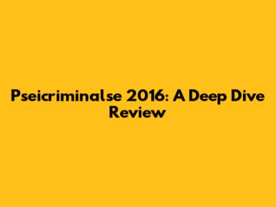 Pseicriminalse 2016: A Deep Dive Review