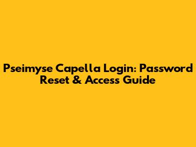 Pseimyse Capella Login: Password Reset & Access Guide