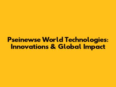 Pseinewse World Technologies: Innovations & Global Impact