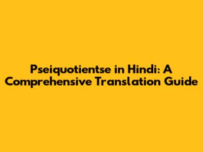 Pseiquotientse In Hindi: A Comprehensive Translation Guide