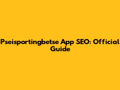 Pseisportingbetse App SEO: Official Guide