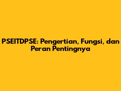 PSEITDPSE: Pengertian, Fungsi, Dan Peran Pentingnya