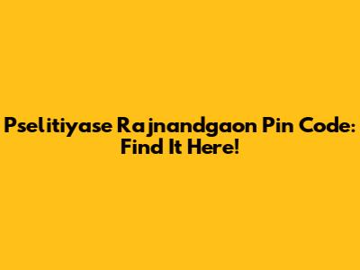 Pselitiyase Rajnandgaon Pin Code: Find It Here!