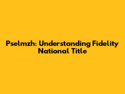 Pselmzh: Understanding Fidelity National Title