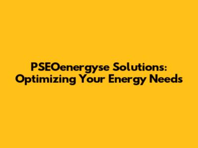 PSEOenergyse Solutions: Optimizing Your Energy Needs